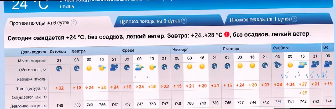 - Завтра: +24°C, переменная облачность;