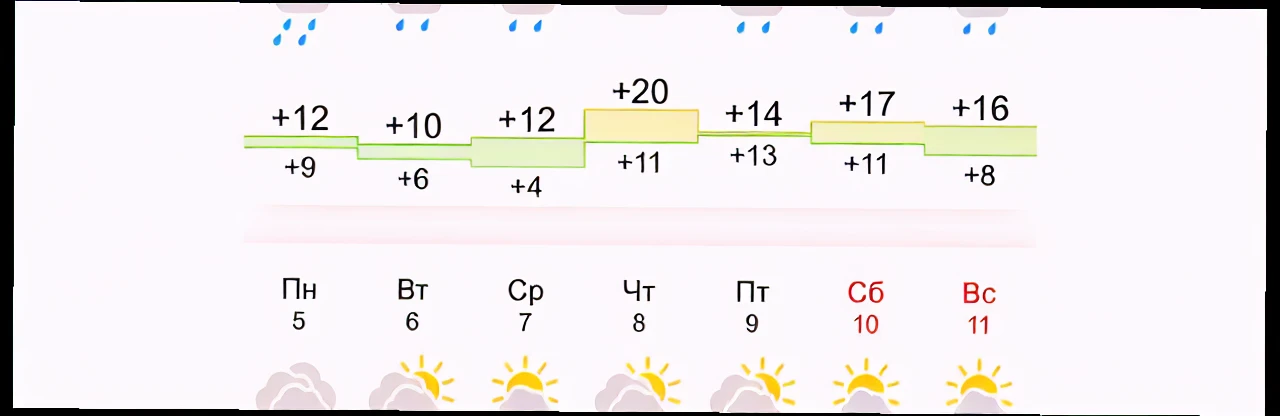 - Изменён вид графика температурного режима, он стал проще и понятней. Так, линия, которая раньше обозначала минимальную ночьную температуру, исчезла. Вместо неё появился новый тип диаграммы, где обозначены разные периоды времени в течение суток. Отражение этих временных промежутков отличается цветом: тёмно‑синим отмечается вечерние часы (18–23), светло‑голубым — дневной период (9–17), серым — раннеутренние часы (до 9 утра) и белым — остальное время. Благодаря этому пользователь сразу видит различия между разными частями суток.