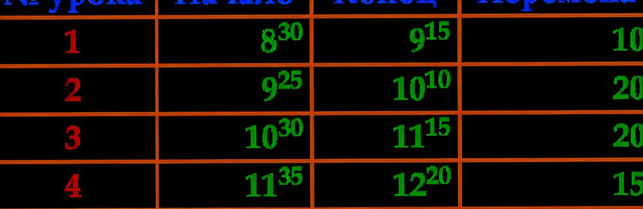 Расписание звонков с 8:30 по 45