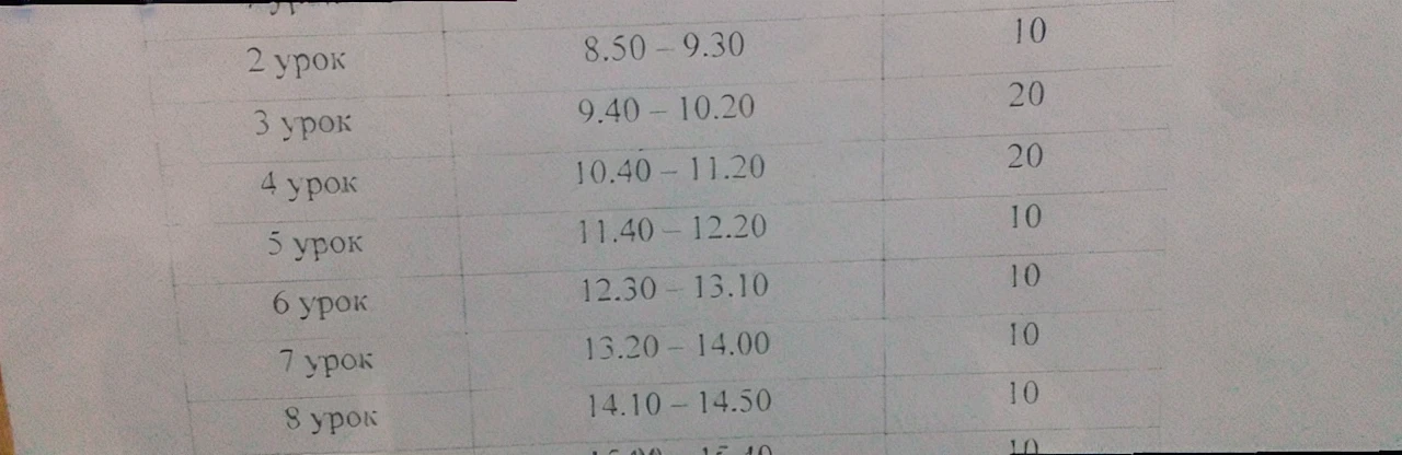 Расписание звонков в школе №55